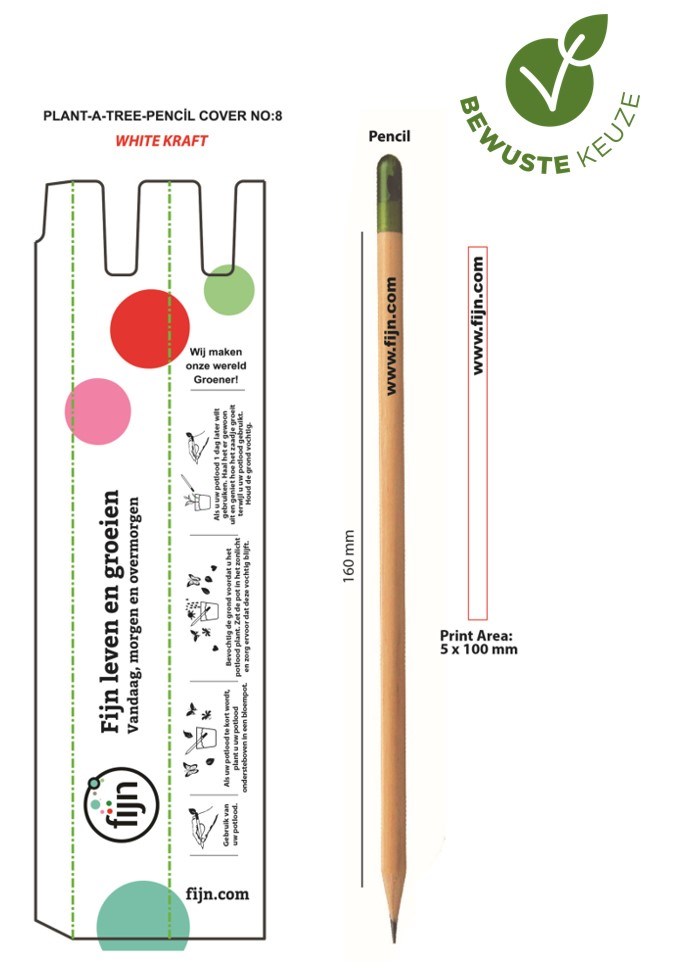 Zaadjes in de dop van de potlood. Bedrukkingsoppverlak potlood 5x100mm. Incl. opdruk in 1 kleur....meer